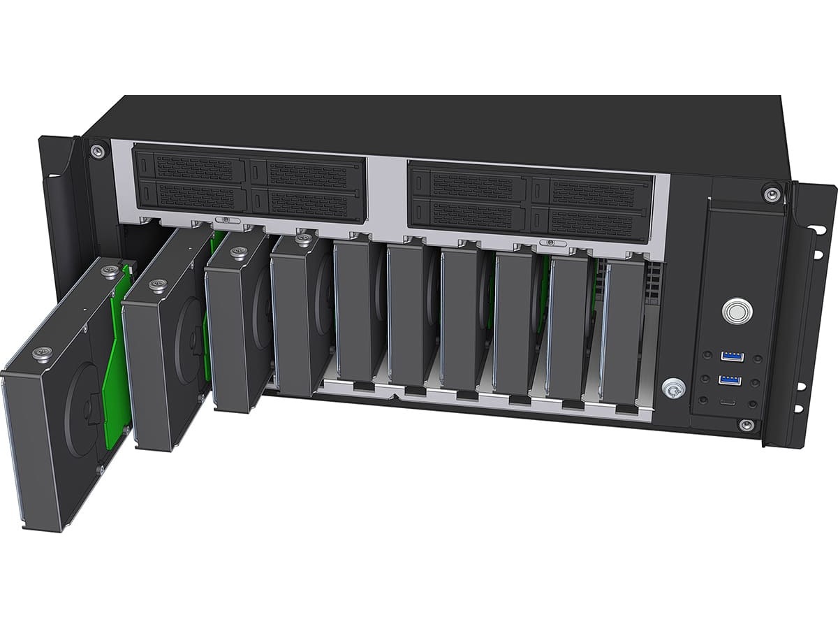 8 (totalt)/ 8 (ledig) x åtkomligt framifrån - PCIe-kort, 10 (totalt)/ 10 (ledig) x åtkomligt framifrån - 3.5", 4 (totalt)/ 4 (ledig) x intern - 2.5" |