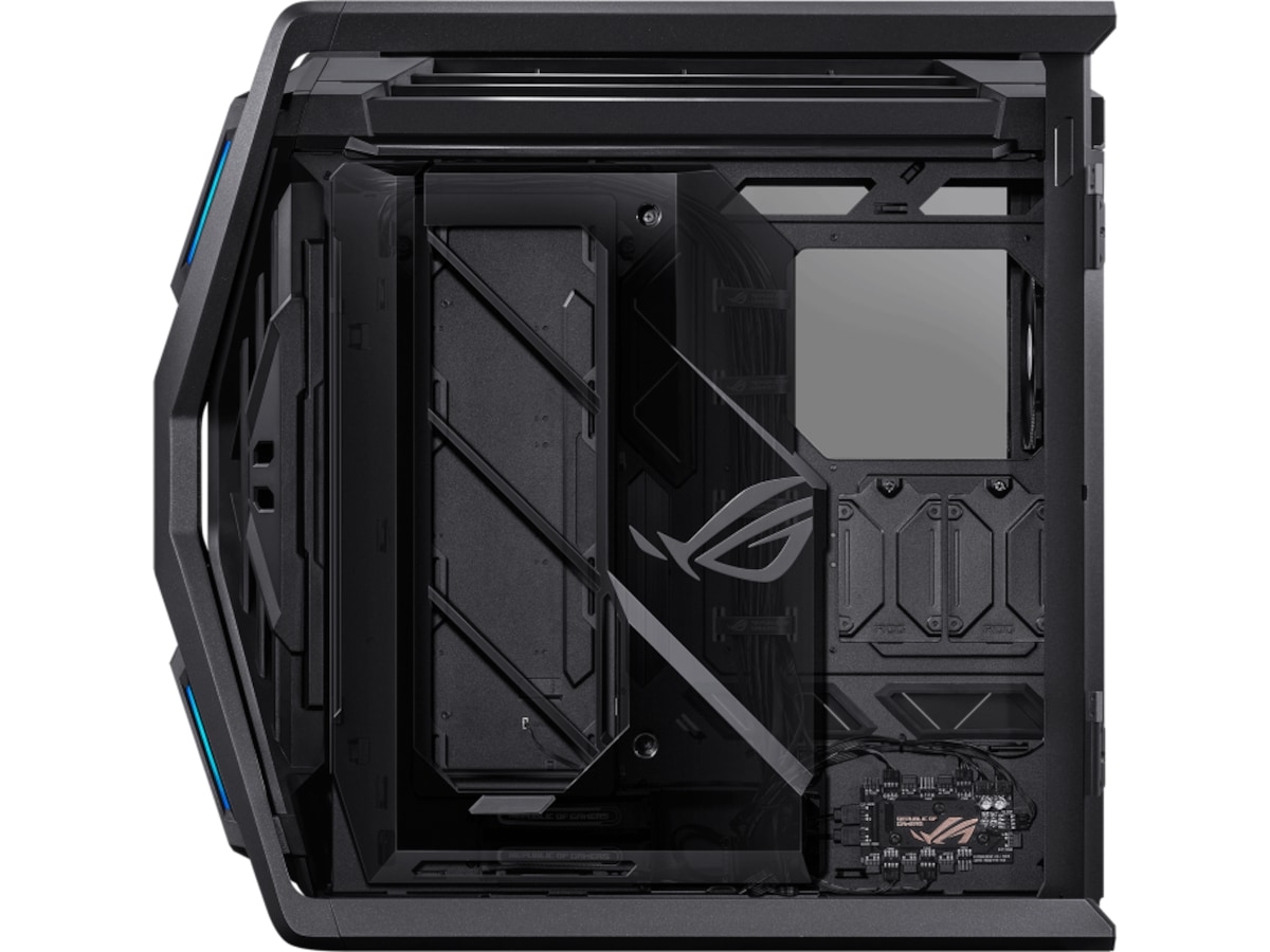 ROG Hyperion är en förbättring av tidigare designer med en uppgradering till robusta aluminiumlegeringar som är inbyggda i chassits ram, vilket ger en struktur som klarar 60 % mer vikt jämfört med ROG Strix Helios och enkelt kan placeras med hjälp av de inbyggda handtagen.