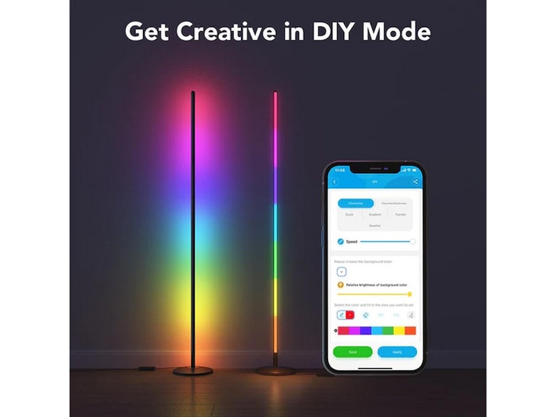 Denna slimmade och minimalistiska golvlampa är designad för att modernisera ditt hem. Med hjälp av RGBICWW-teknik kan du skapa ett underbart collage av färger för att lysa upp alla inomhusutrymmen.