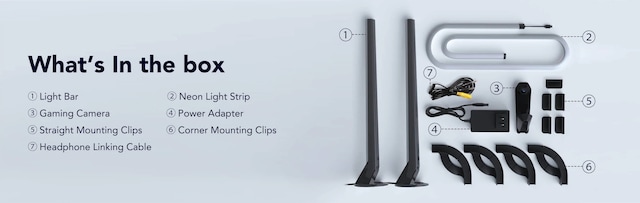 För att säkerställa en full uppslukande upplevelse måste neonljusremsan appliceras på skärmen med en platt baksida (upphöjda steg påverkar installationen av monteringsclipsen).