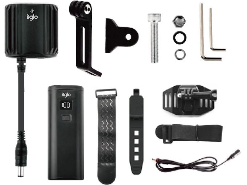Lampan ansluts med en kabel till en DC-port på ett uppladdningsbart batteripaket som kan förvaras i din jackficka, ryggsäck eller fästas i ramen på din cykel.