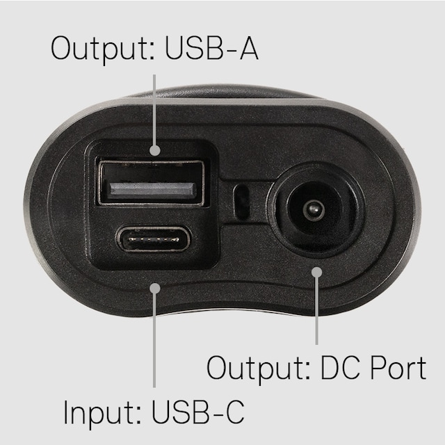OBS: USB-C-porten fungerar bara som ingång för laddning av din powerbank.