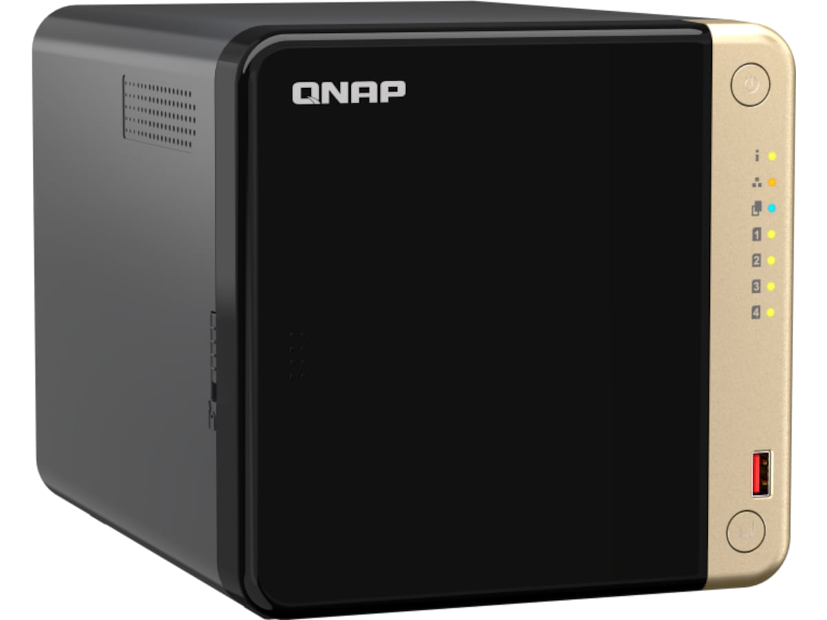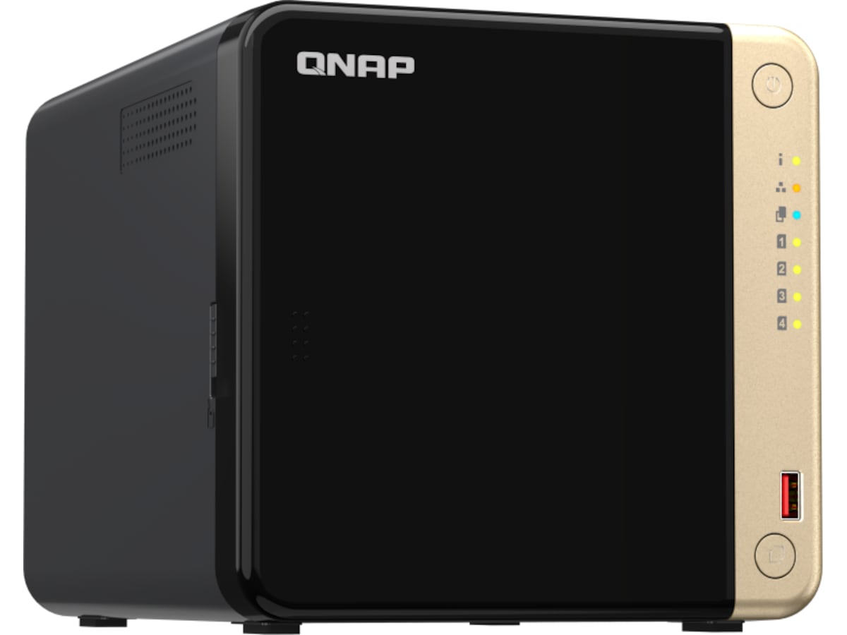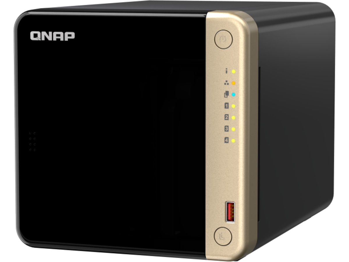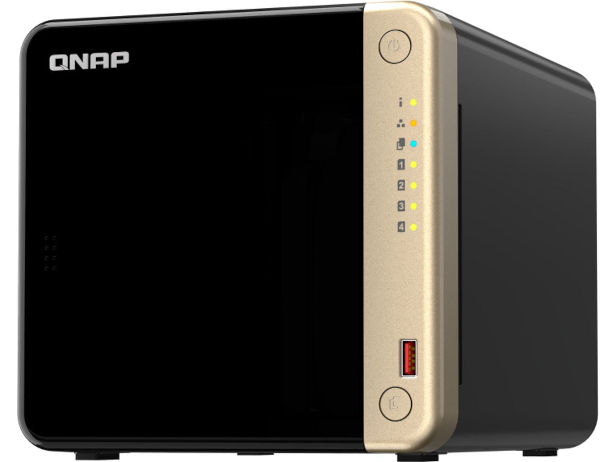 TS-464 är en kompakt NAS med 4 fack med överlägsen prestanda. Med stöd för upp till 66 TB lagringsutrymme och 4 TB M.2 SSD-cachelagring* till ett överkomligt pris klarar TS-464 dina utmaningar när det gäller filhantering, säkerhetskopiering, samarbete och videokonvertering.