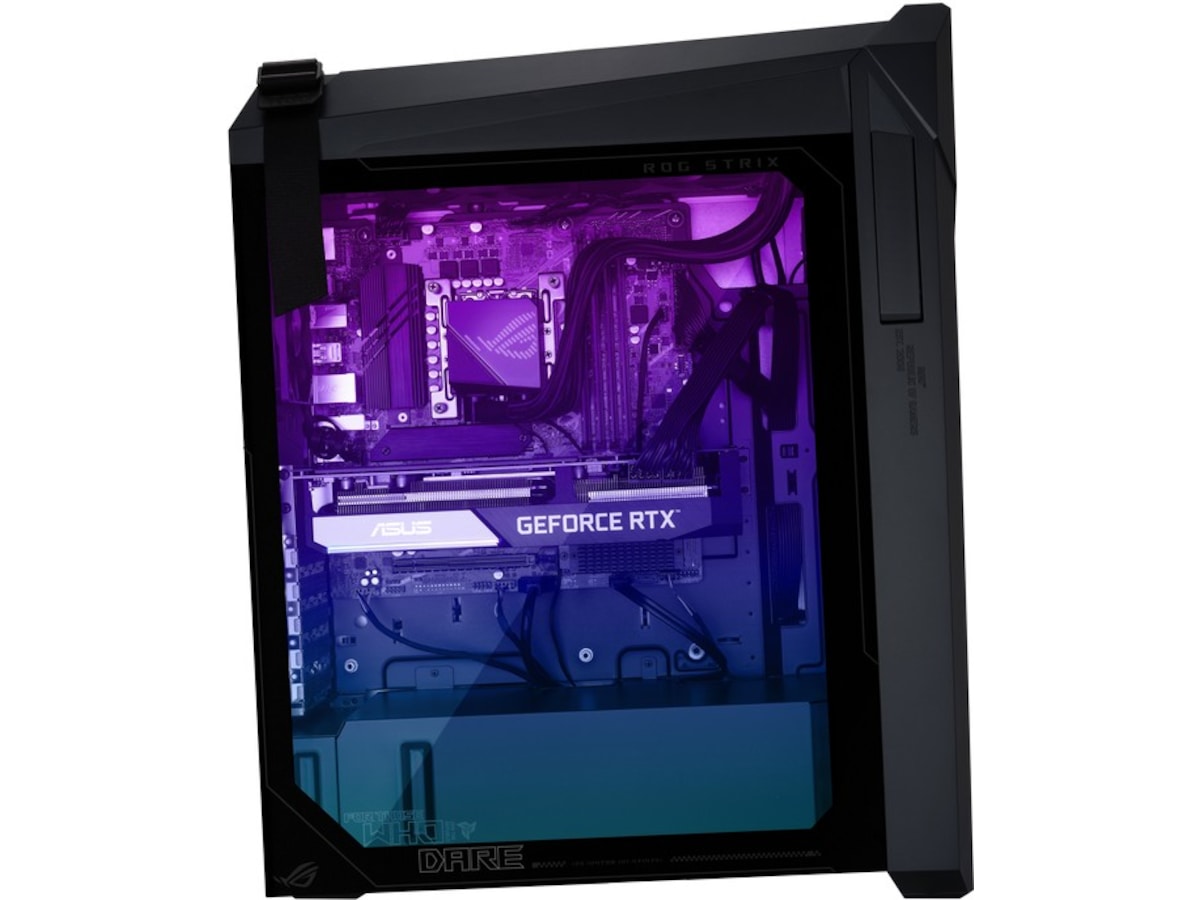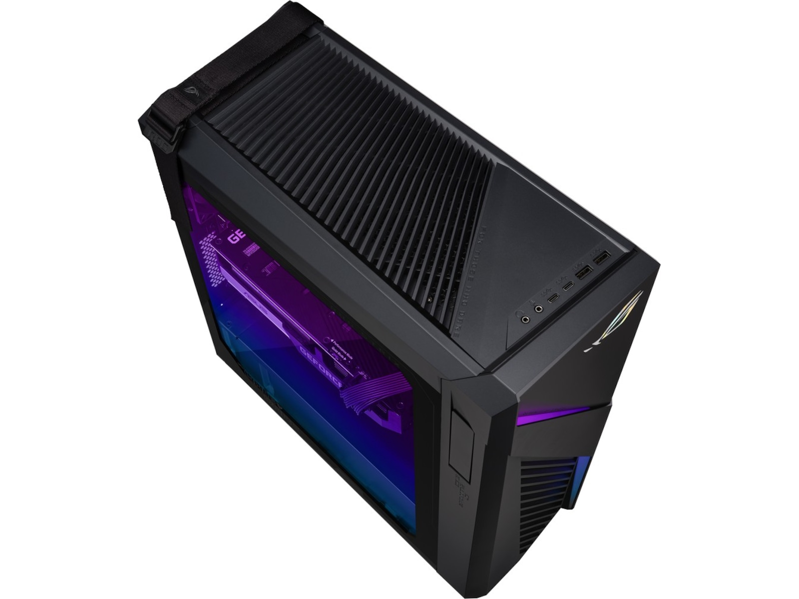 Den ventilerade frontpanelen ser inte bara till att dina PC-komponenter hela tiden får frisk luft, utan visar även upp de sneda streck och det designspråk som gör ROG unikt. RGB-belysningskanalerna ger små färgstänk till en i övrigt stilren yta, och låter dig anpassa G16CH till din smak.