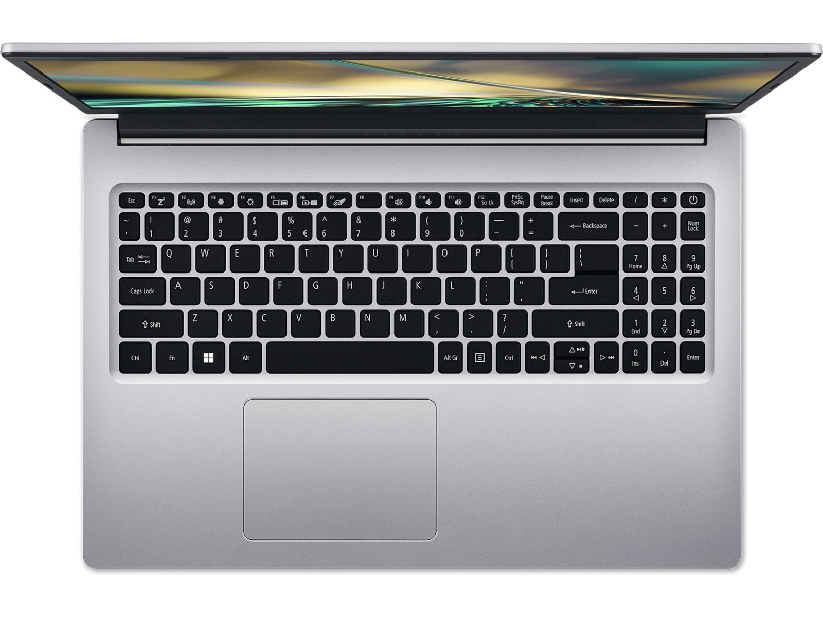 Aspire 3, som väger mindre än 1,81 kg, har ett lågprofiligt gångjärn för en diskret design. Den här produkten finns i färgen Pure Silver och det långvariga batteriet gör att den här enheten kan gå från rum till rum i upp till 9 timmar.