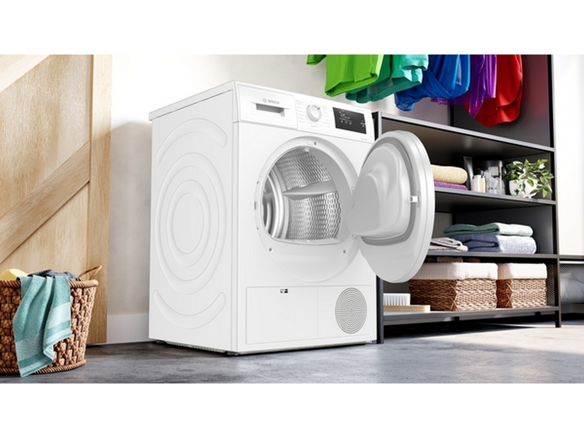 Maskinens innovativa AntiVibration-sidoväggar är speciellt utformade för att ge ökad stabilitet och minska vibrationerna på ett optimalt sätt. Den förbättrade isoleringen reglerar även ljudnivån, vilket gör Bosch torktumlare extra tysta.