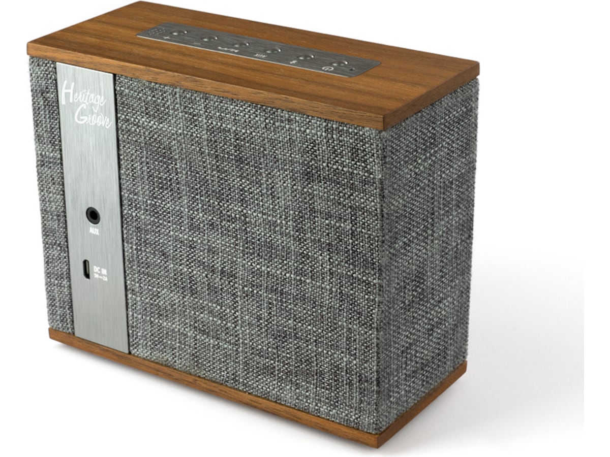 Heritage Groove är en bärbar trådlös högtalare av högsta kvalitet som är utformad för att ge stort ljud varhelst livet tar dig, och kombinerar storlek, stil och funktionalitet.
