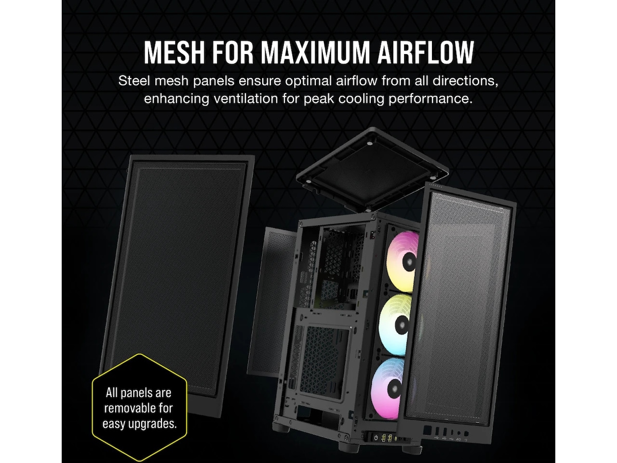 Avtagbara front-, sido- och takpaneler i stålnät ger riklig ventilation från nästan alla sidor av ditt system för maximal kylning.