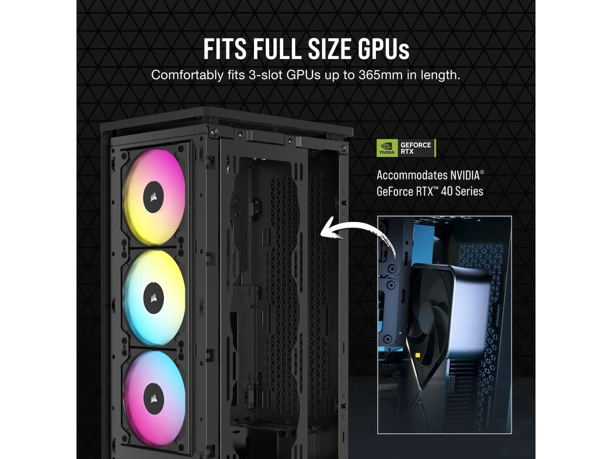 Du behöver inte offra prestanda med ett SFF-fodral. Låt din GPU i full storlek andas in en optimerad interiör som kan rymma upp till 8x 120 mm fläktar och mesh-luftflödespaneler på alla sidor.