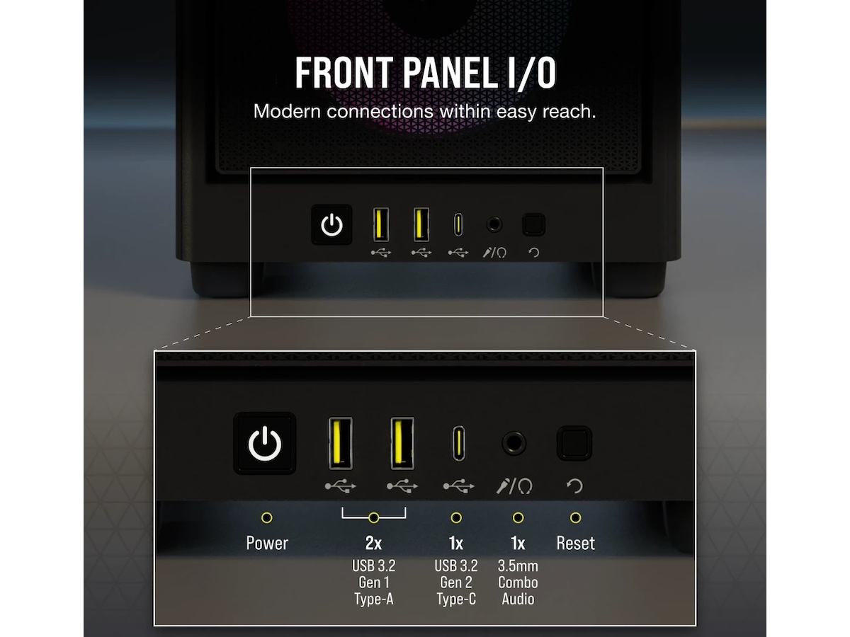 CORSAIR 2000D RGB AIRFLOW är ett mini-ITX hölje med liten formfaktor med levande RGB-belysning som drivs av CORSAIR iCUE-programvara och fenomenal kylning tack vare högt luftflöde av stålnätpaneler