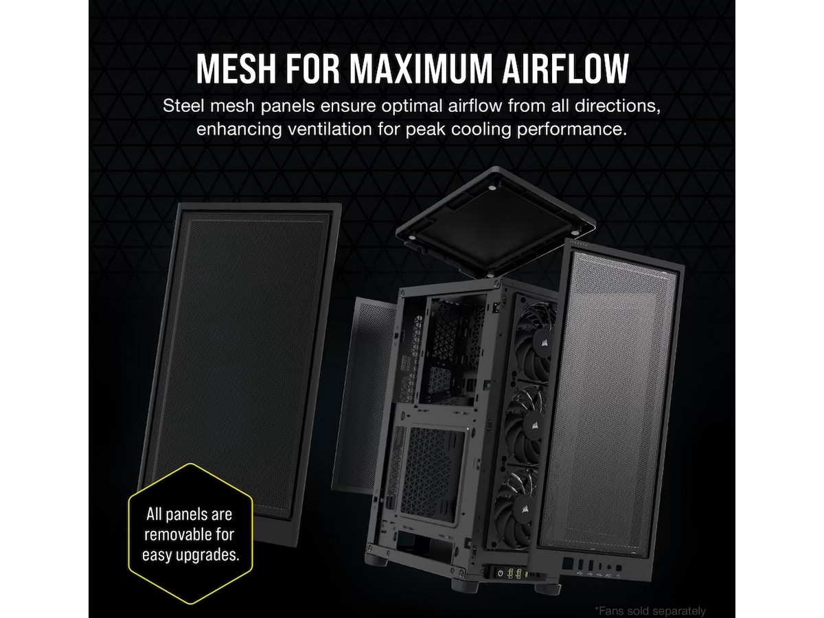 Avtagbara front-, sido- och takpaneler i stålnät ger riklig ventilation från nästan alla sidor av ditt system för maximal kylning.