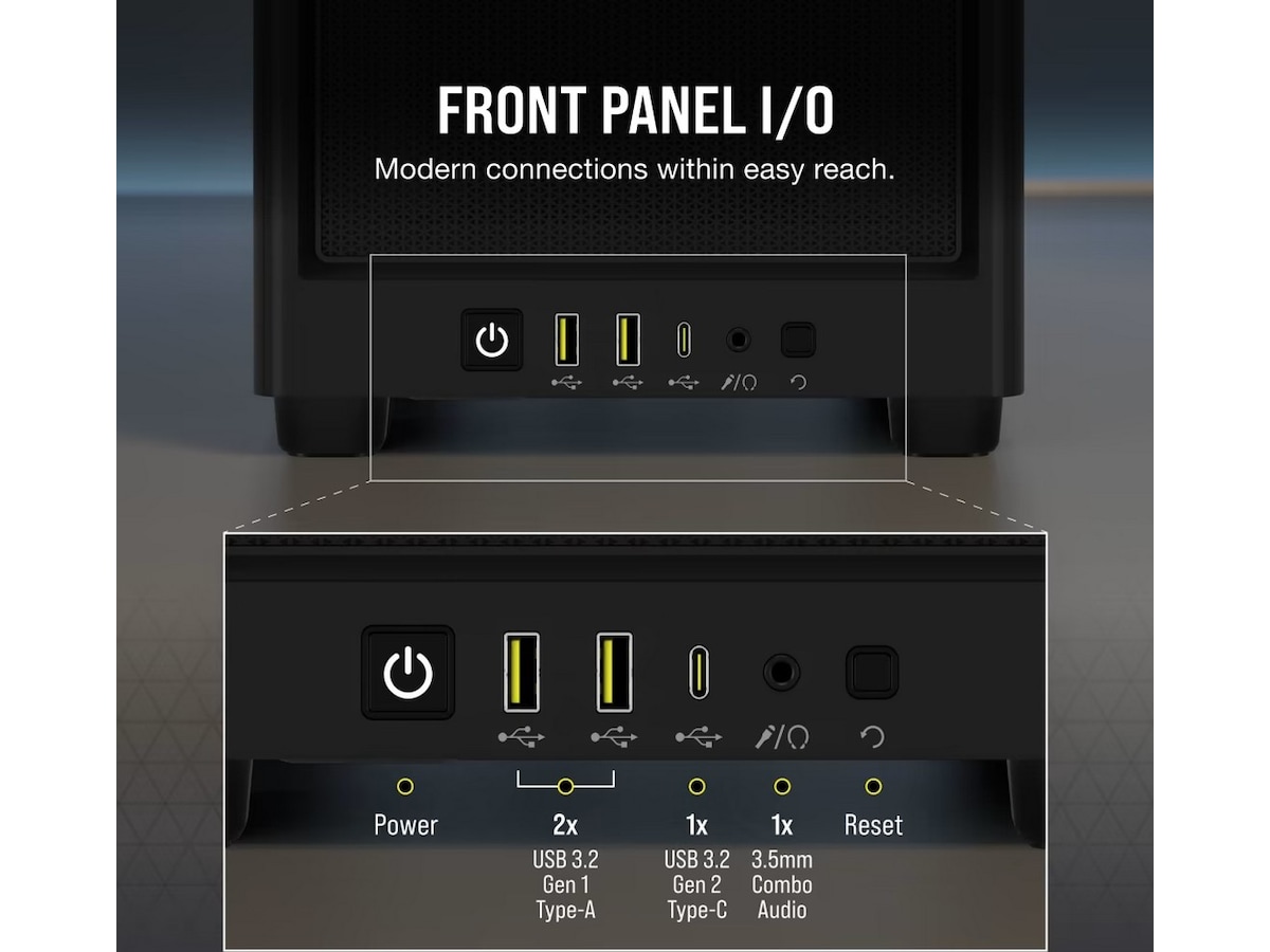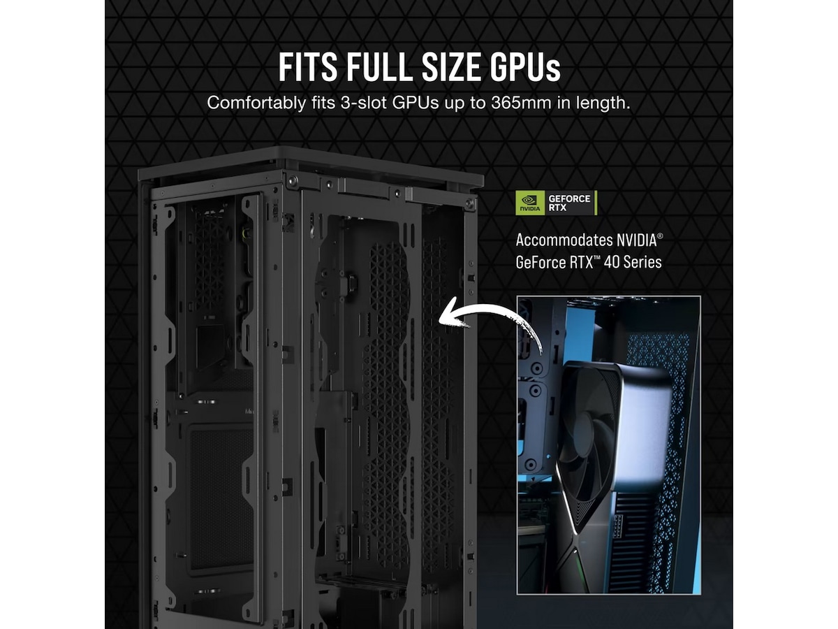 Du behöver inte offra prestanda med ett SFF-fodral. Låt din GPU i full storlek andas in en optimerad interiör som kan rymma upp till 8x 120 mm fläktar och mesh-luftflödespaneler på alla sidor.