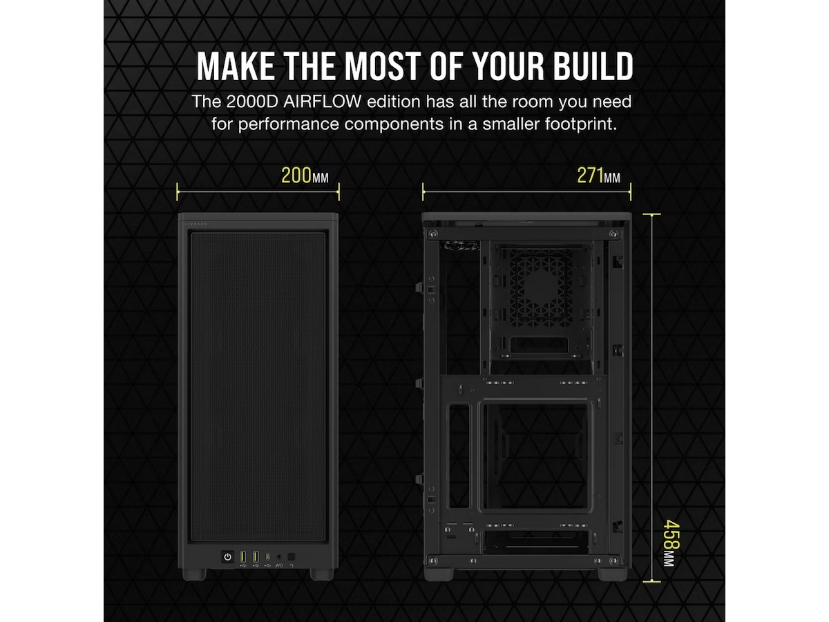2000D AIRFLOW:s interiör gör det mesta av sitt utrymme för att maximera kylningspotentialen för verkliga prestandabyggen.