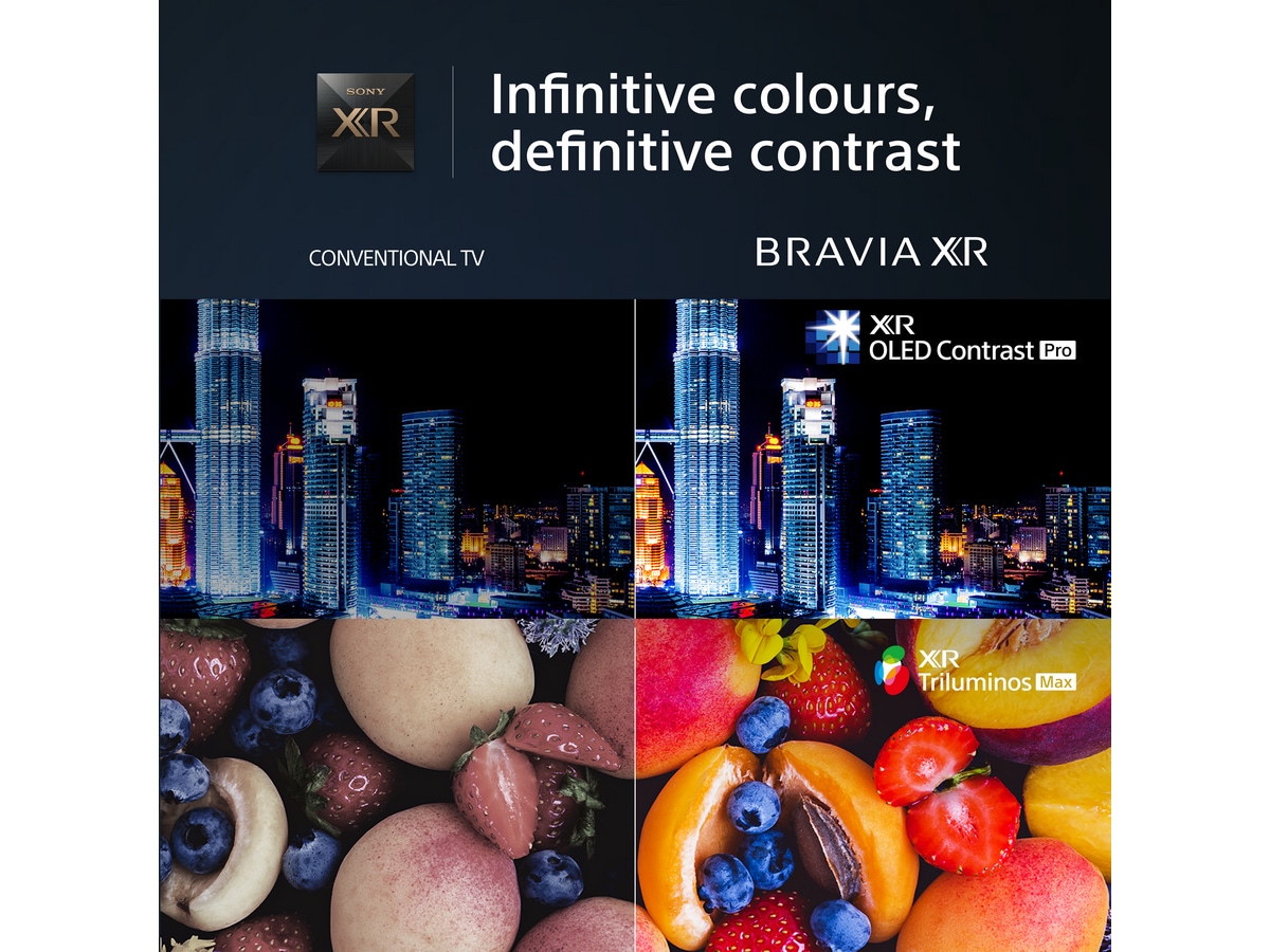 | Bildförbättringar | IMAX-förbättrad, BRAVIA CORE-kalibrerad, XR TRILUMINOS Max, XR Smoothing, Skärpeförbättring, Live Color, Pixel Contrast Booster, XR Super Resolution, OLED XR Contrast Pro, XR 4K-uppskalning, Dynamic Contrast Enhancer, Auto HDR-tonmappning, Netflix kalibrerat läge |