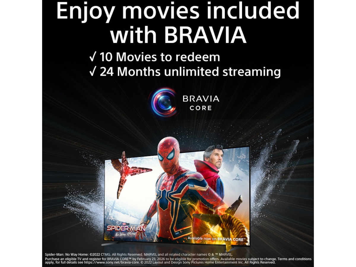 | Egenskaper | Textförstoring, Skärmläsare, Stöd för BRAVIA CAM, Audio Description (AD), CalMAN autokalibreringsstöd, Vilolägestimer, Inbyggd Chromecast, Dubbel databasbehandling |