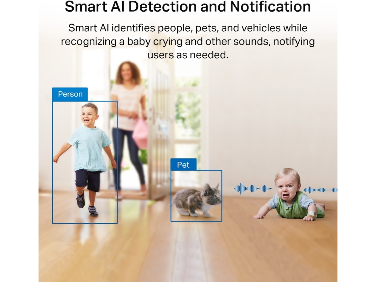 Smart AI-detektion och -meddelande - Smart AI identifierar människor, husdjur och fordon samtidigt som de känner igen onormala ljud och meddelar användarna vid behov.