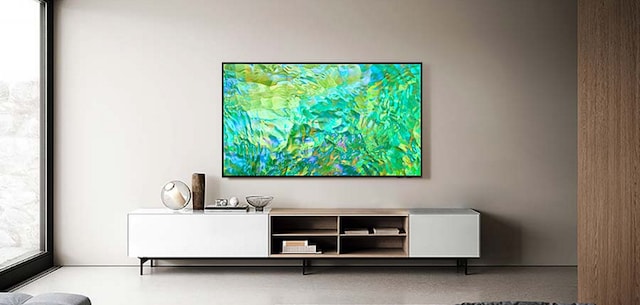 TV med slimmad design och Samsungs senaste Smart Hub för streaming av filmer och serier direkt via TV:n.