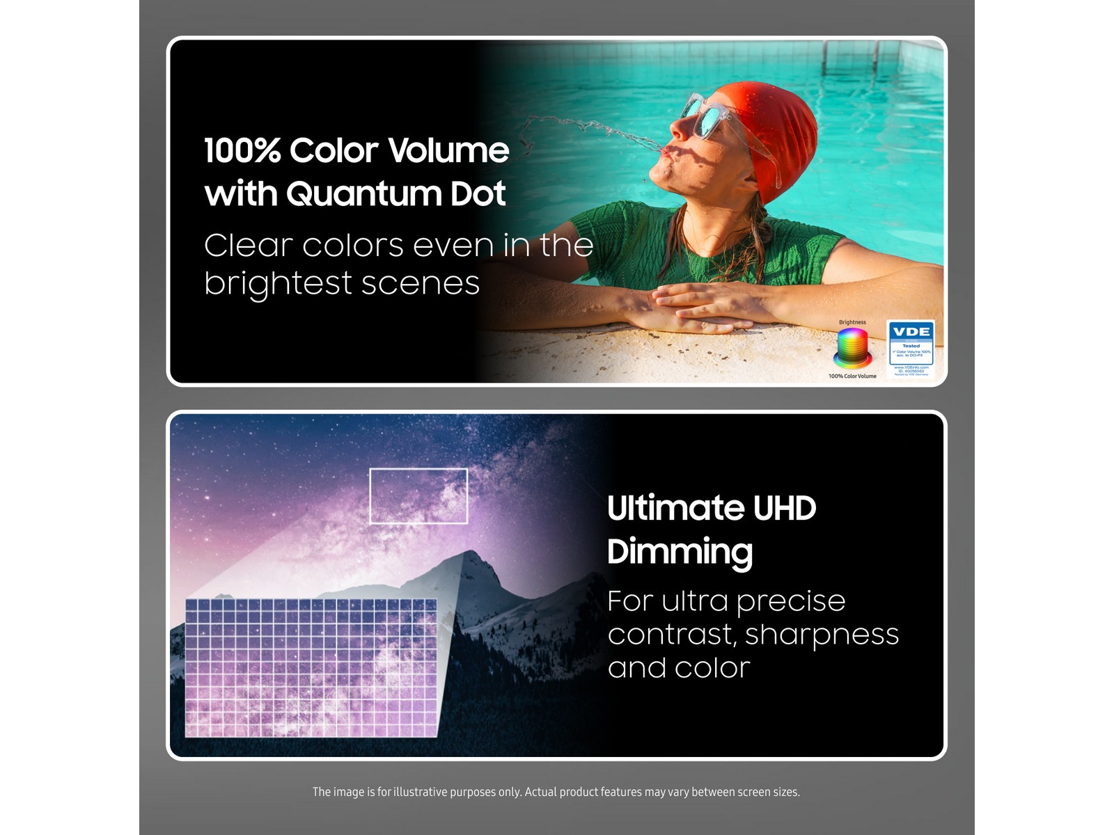 *100 % Color Volume by QLED är mätt enligt DCI-P3 standard, och certifierat av VDE.