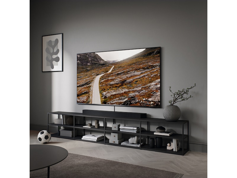 Stilren tunn design som gör TV:n lika snygg på väggen som på TV-bänken.*