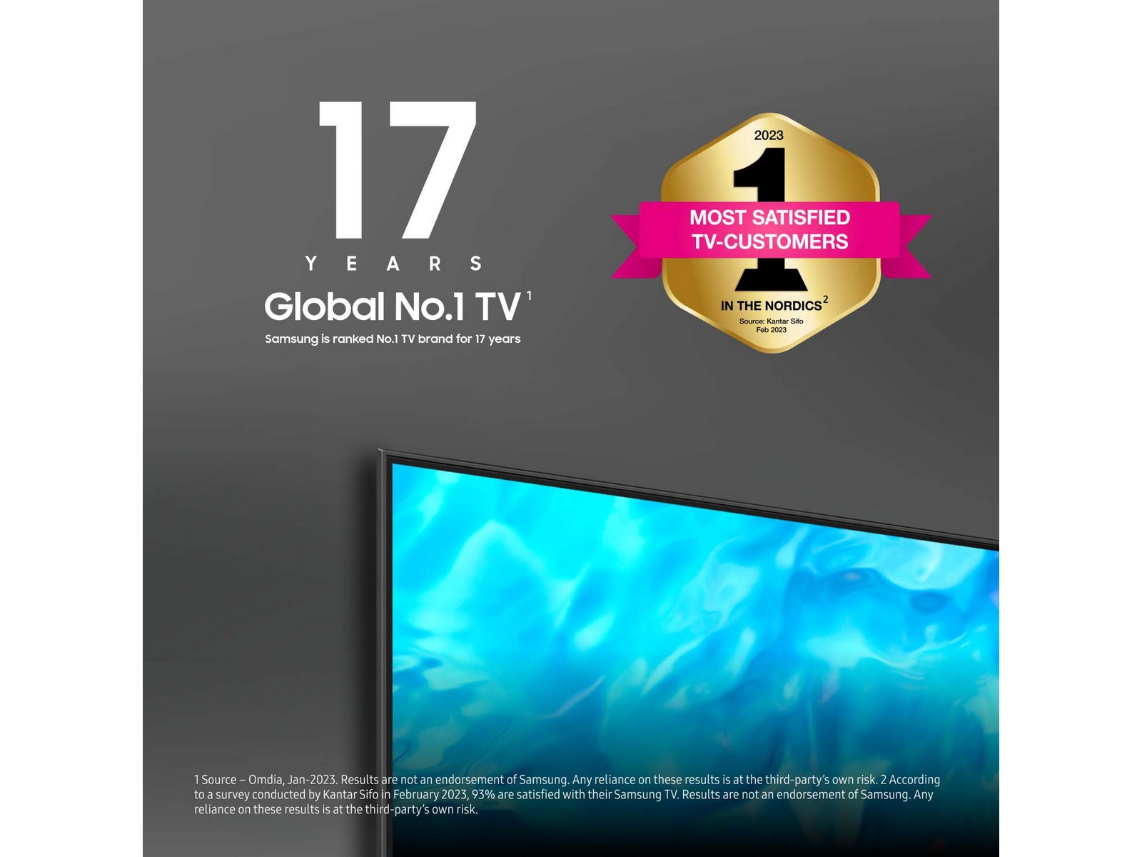 Enligt en undersökning utförd av Kantar Sifo genomförd i januari 2023 är 93 % nöjda med sin Samsung TV. Resultaten är inte ett marknadsföringsbudskap från Samsung. Eventuella hänvisningar till dessa resultat sker på egen risk av tredje part.