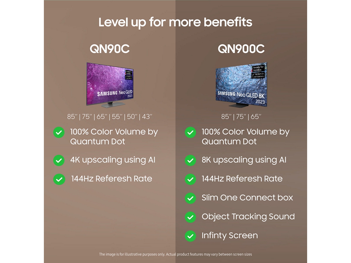 2. Enligt en undersökning utförd av Kantar Sifo genomförd i januari 2023 är 93 % nöjda med sin Samsung TV. Resultaten är inte ett marknadsföringsbudskap från Samsung. Eventuella hänvisningar till dessa resultat sker på egen risk av tredje part.