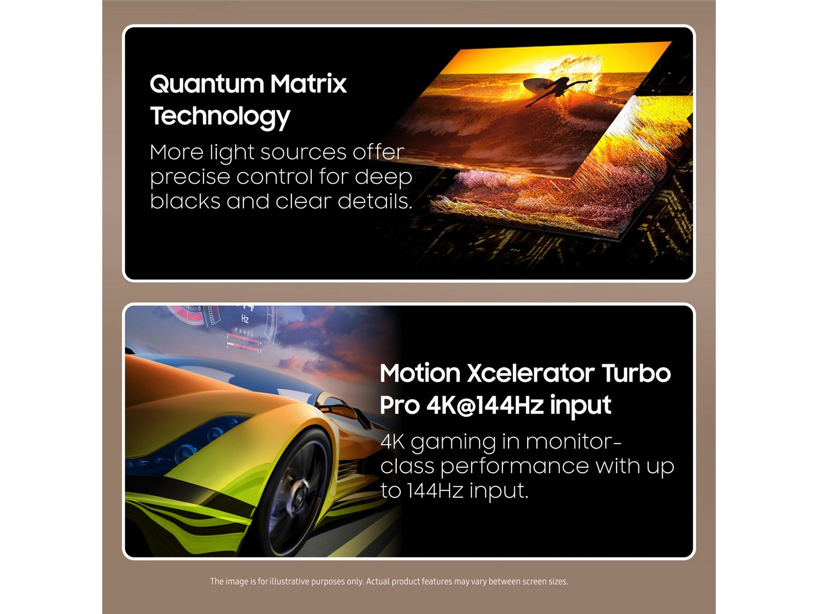 Bildförbättringar 100% Color Volume, Dynamic Black EQ, AI-uppskalning, En miljard färger, Bred synvinkel, Djupförbättring, Auto HDR Remastering