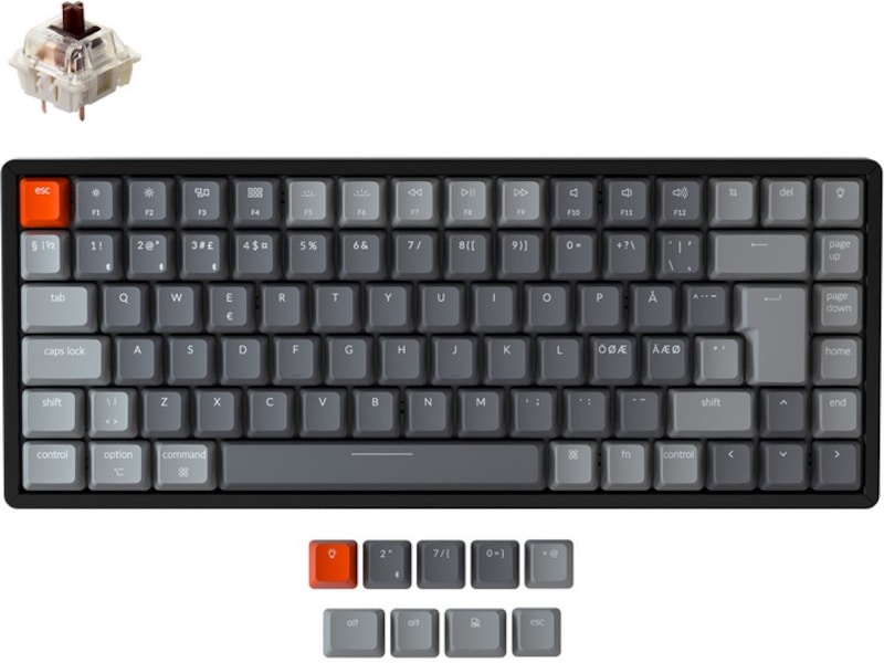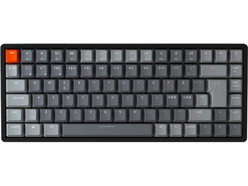 K2:s design med 84 tangenter genom att behålla alla viktiga funktionstangenter som Page Up/Down, Home, End och Screen capture (cmd+shift+4) som är viktiga för din produktivitet. Med N-key rollover (NKRO endast i trådbundet läge) kan du registrera så många nycklar som du kan trycka på samtidigt utan att missa tecken.