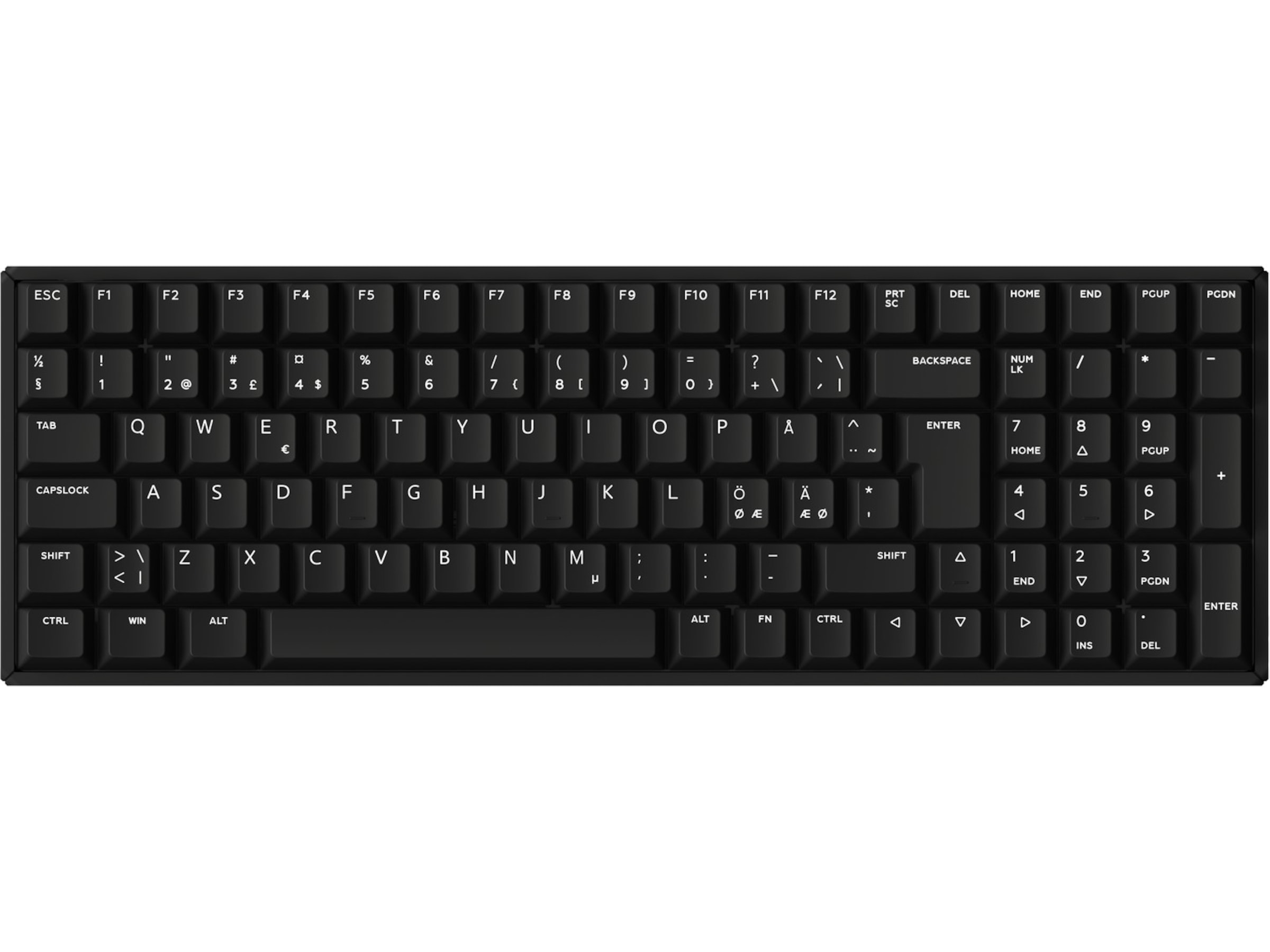 Kompakt layout med 100 tangenter, det är ett "full-size" tangentbord som innehåller ett numeriskt tangentbord, men frigör skrivbordsutrymme.