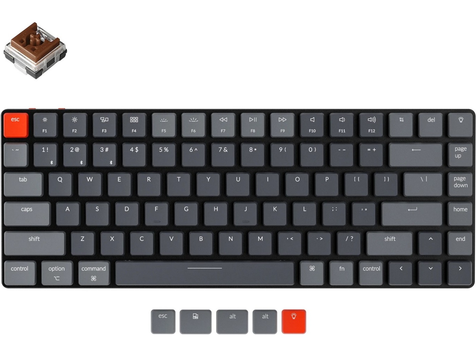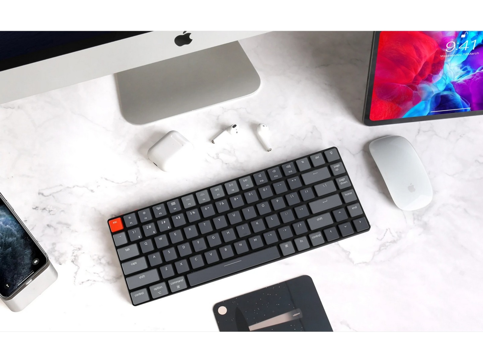 Den omgjorda lågprofilsbrytaren är 40 % smalare än konventionella strömbrytare. Tillsammans med den strömlinjeformade aluminiumkroppen gör K3 till ett av de tunnaste och lättaste trådlösa mekaniska tangentborden i världen.