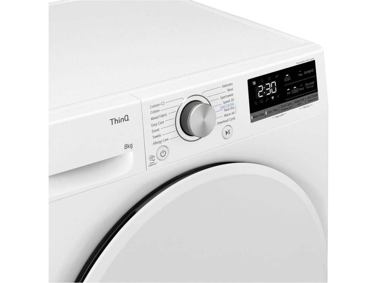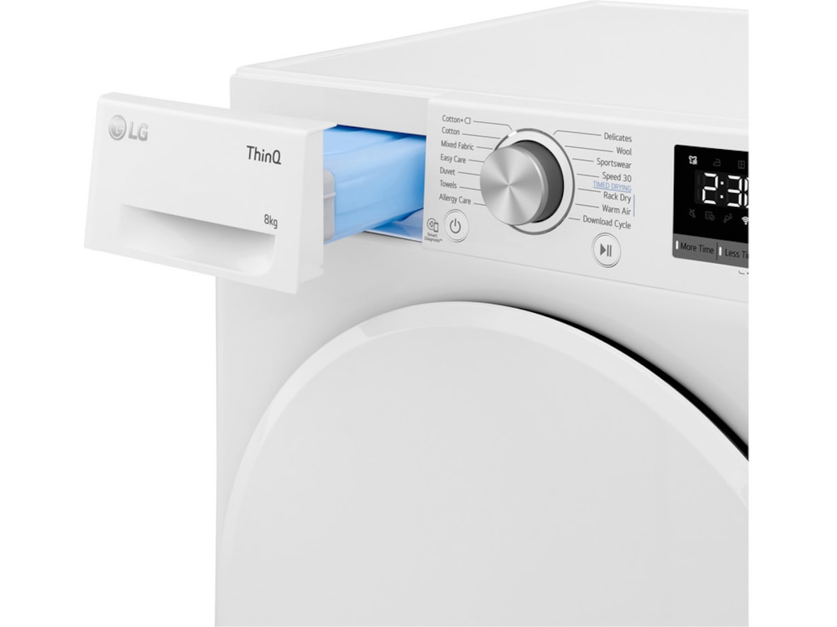 Torktumlaren kan ta emot information om tvättprogrammet från din LG tvättmaskin (Wi-Fi), och kommer automatiskt att ställa in en anpassad torkcykel för att ge kläderna den mest skonsamma skötseln.