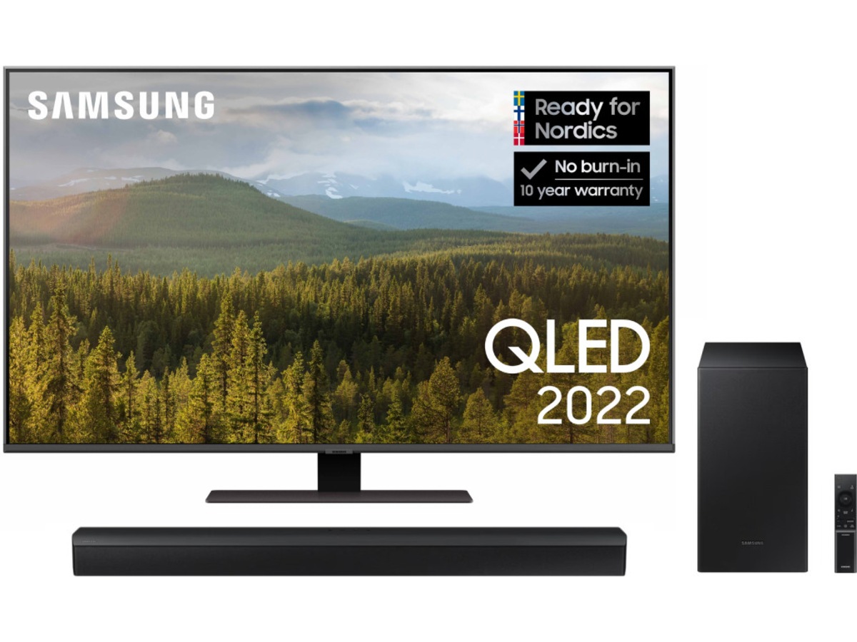 Detta är ett paketerbjudande: Du får Samsung 85" Q80B 4K QLED TV och Samsung HW-B660/XE Soundbar i detta paket.