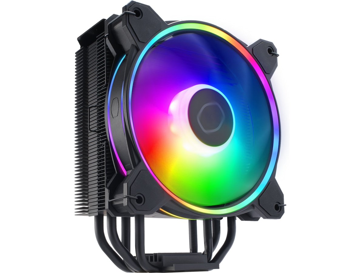 Cooler Master Hyper 212 Halo ARGB Auto Detektion Ren vit finish Brett spektrum kompatibilitet Topplock av polerat aluminium Uppgraderade installationsfästen MF120 Halo Förbättrat luftflöde med fantastisk dubbelslinga ARGB-belysning. Omdesignad hybridram bibehåller stabilitet utan att offra fläktens operativa fastigheter.