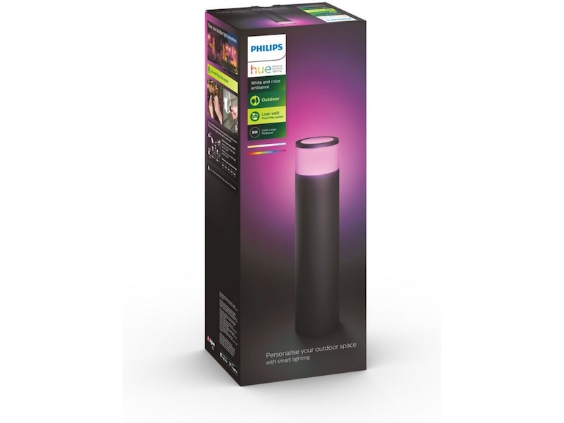 Denna piedestal är enkel att installera, get ifrån sig ett fantastiskt ljus, samtidigt som du kan kontrollera den helt trådlöst. Skapa scheman så att din uteplats lyser upp automatiskt när det blir kväll, eller aktivera platslokalisering i Hue-appen så att ljuset välkommnar dig hem efter en lång dag på jobbet. Precis som andra armaturer i kategorin White and color ambiance, så har Calla tillgång till över 16 miljoner nyanser av färg, allt du kan behöva för att skapa den perfekta stämningen. Denna utökningsenhet kommer inte med ett nätaggregat, så passar dig som endast vill utöka ditt belysningssystem som är kopplat till ditt existerande Hue-nätaggregat.
