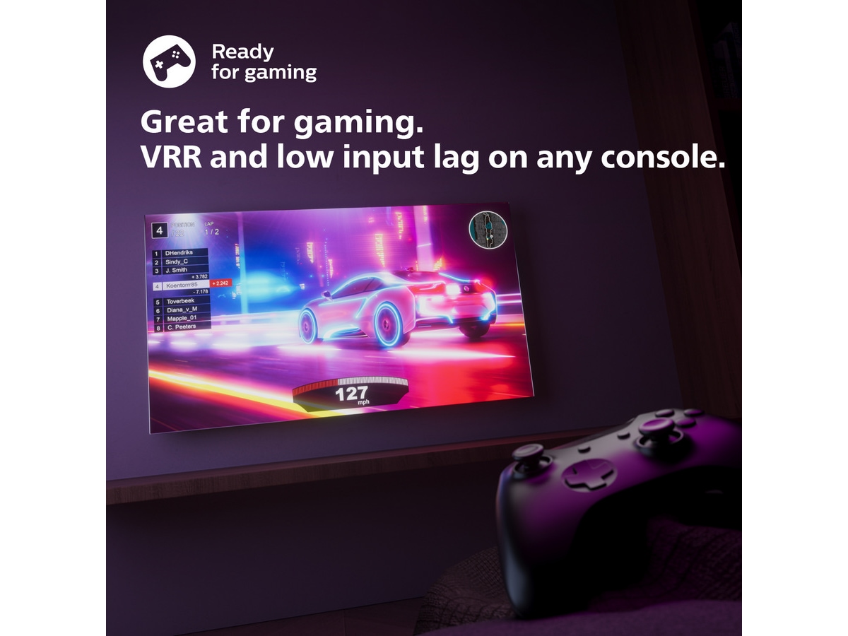 • Bra för spel. VRR och låg ingångsfördröjning på alla konsoler.