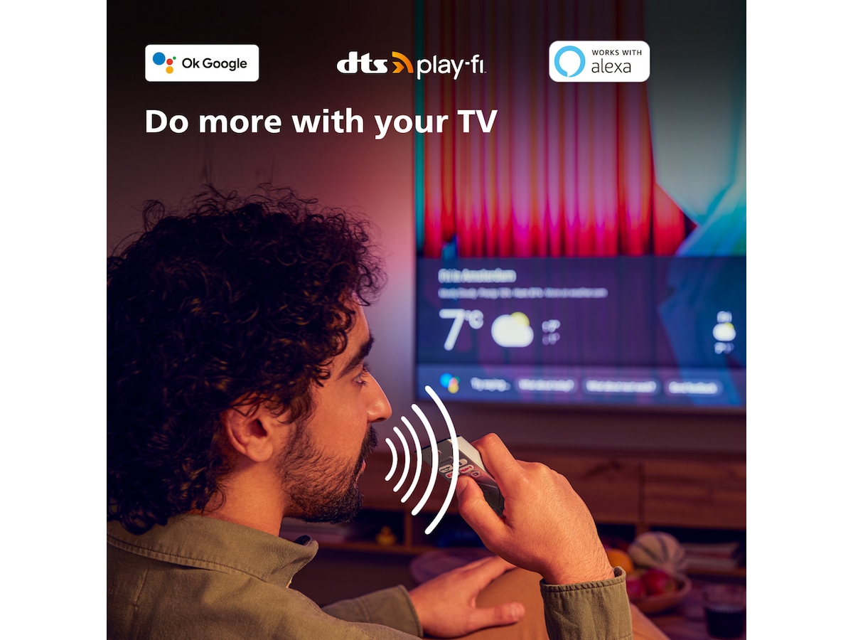 Ge din fritid ett lyft med det. Denna 4K Ambilight TV fördjupar dig i alla serier, filmer och spel! Du får bra bildkvalitet, populära streamingappar och ett stativ som enkelt justeras för att passa en soundbar.
