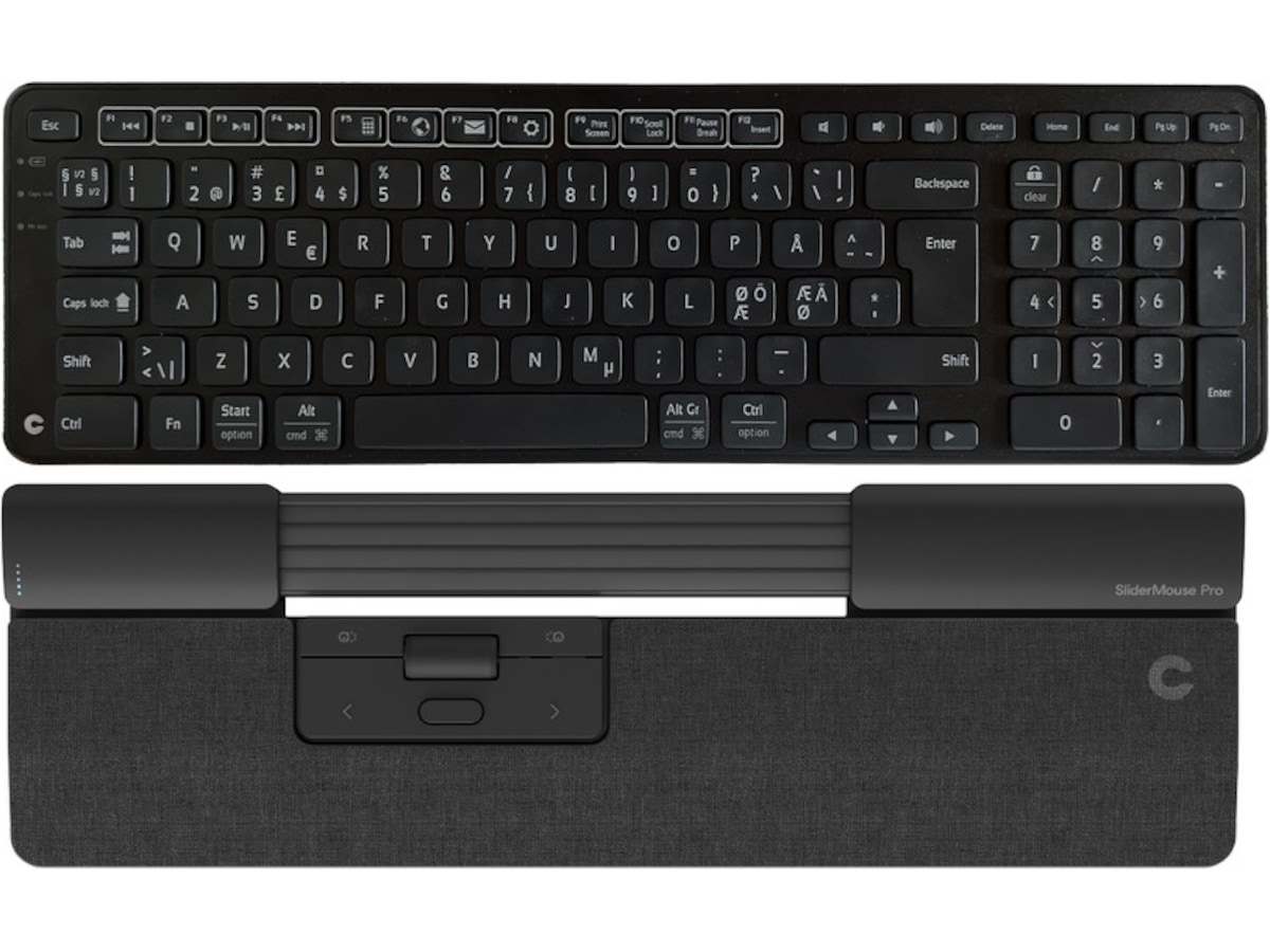 Med SliderMouse Pro och Balance Keyboard BK-paketet får du en idealisk ergonomisk installation för din arbetsstation, oavsett om du är på kontoret eller hemma. Detta paket innehåller en SliderMouse Pro med ett fullstort handledsstöd i mörkgrått tyg och en Balance Keyboard BK med nordisk layout. Det nordiska tangentbordet har extra tangenter så att du enkelt kan skriva specialtecken som används på nordiska språk, som Æ, Ø och Å. Det är det mest använda tangentbordet i Danmark, Finland, Sverige och Norge.