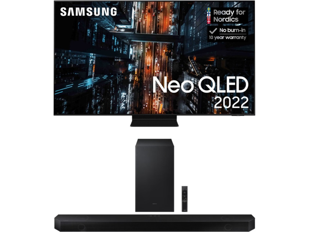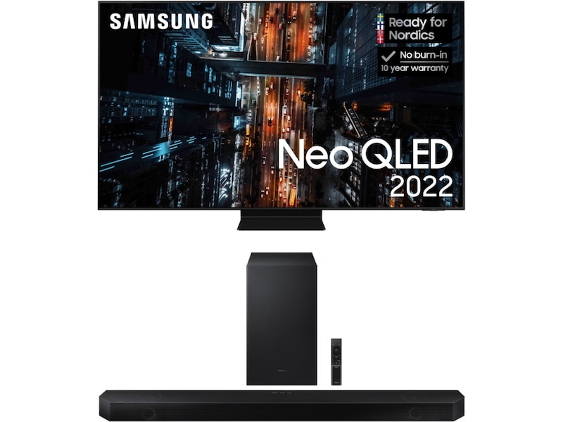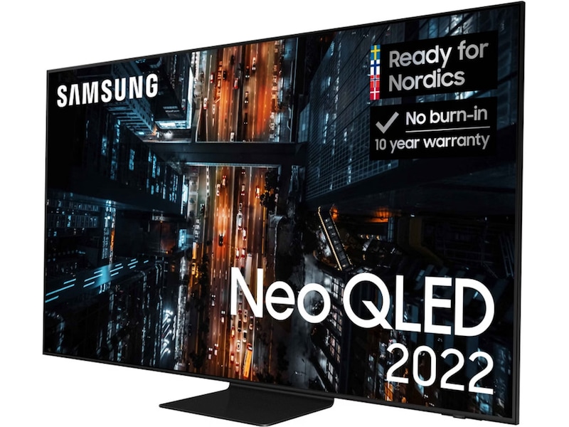 * När du köper 2022 QLED, Neo QLED eller Neo QLED 8K erbjuder Samsung 10-års skärminbrännings-garanti. Garantin gäller i 10 år från köpdatum. För att garantin ska gälla krävs en kopia av köpkvittot och registrering på Samsungs webbplats inom 90 dagar efter köpet. Gäller från 1 apr. 2022 - 31 aug 2023.