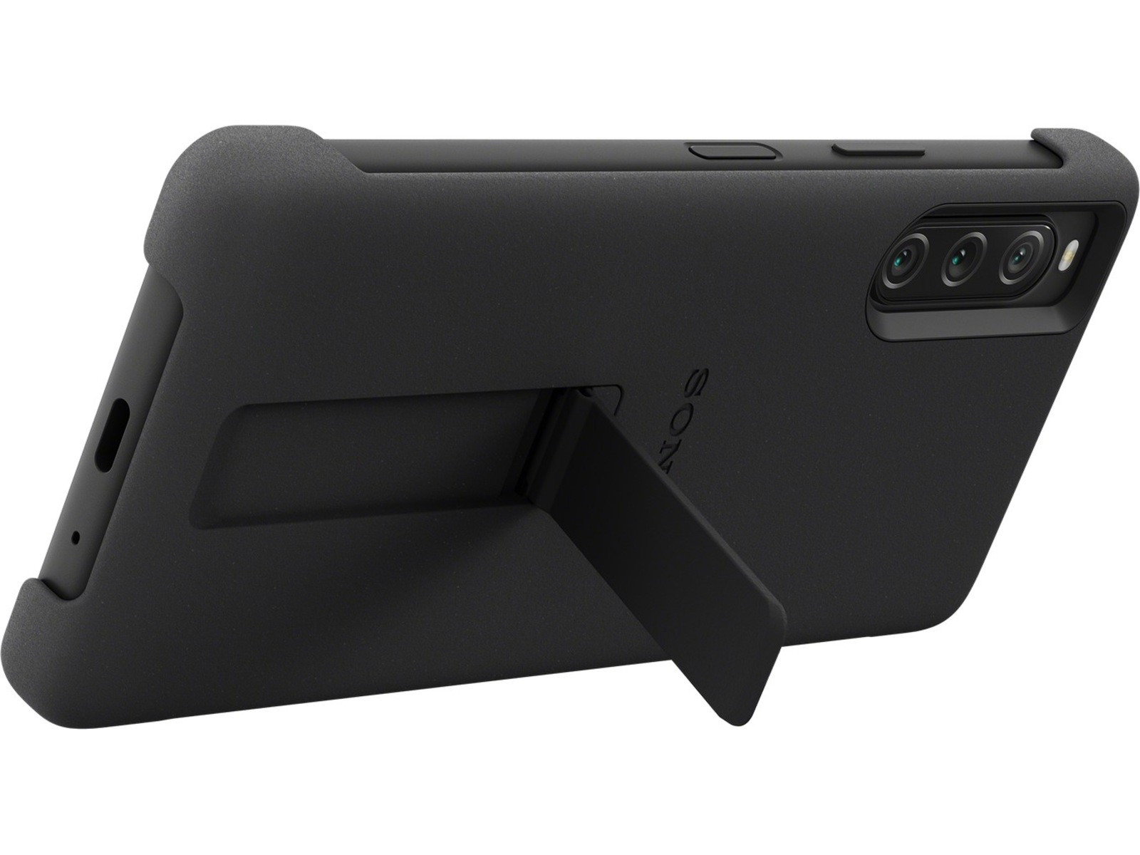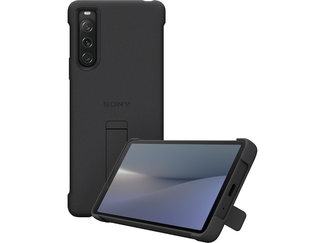 Det här snygga fodralet är designat för att matcha Xperia 10 V och skyddar mot dagligt slitage. Samtidigt fungerar det som ett stativ, vilket ger dig den perfekta vinkeln för att titta på videor horisontellt och att lyssna på ljud från mobilens inbyggda främre stereohögtalare. Det är tillverkat av SORPLAS™ återvunnen plast med antibakteriell finish och finns i en rad färger som matchar din mobil.