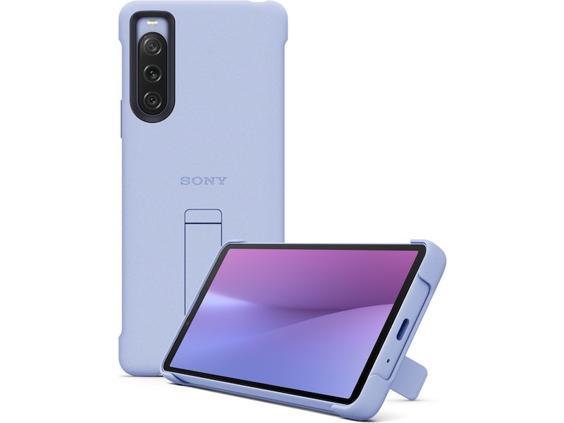 Det här snygga fodralet är designat för att matcha Xperia 10 V och skyddar mot dagligt slitage. Samtidigt fungerar det som ett stativ, vilket ger dig den perfekta vinkeln för att titta på videor horisontellt och att lyssna på ljud från mobilens inbyggda främre stereohögtalare. Det är tillverkat av SORPLAS™ återvunnen plast med antibakteriell finish och finns i en rad färger som matchar din mobil.
