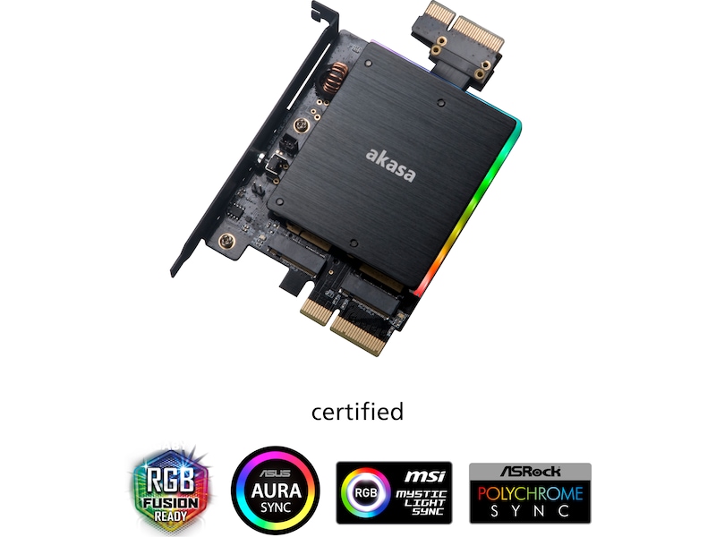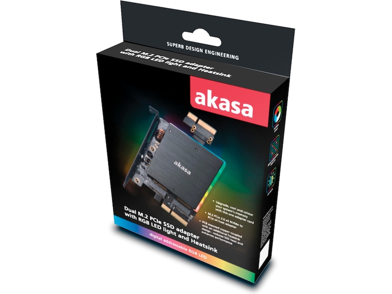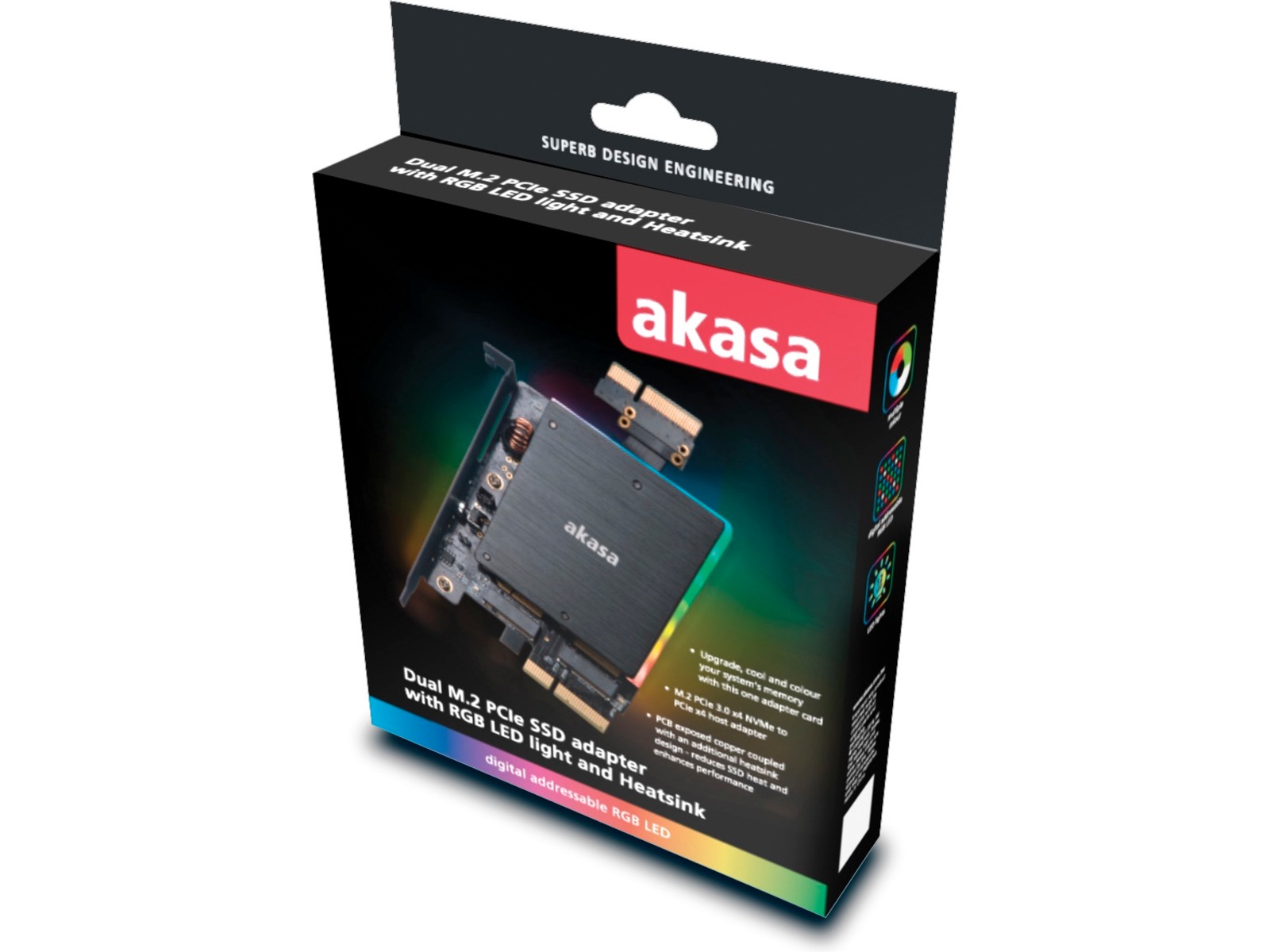 Akasa Dual M.2 PCIe Adapter Dual M.2 PCIe SSD adapterwith RGB LED light and heatsink