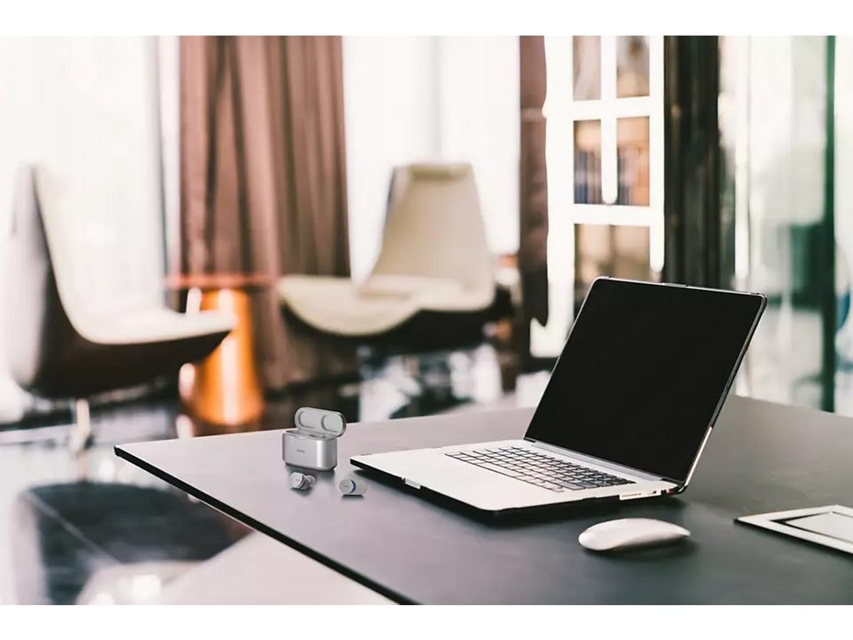 Laddningsfodral (650 mAh), 3 par öronsnäckor med justerbar form (liten, medium, stor), 6 par hörsnäckor |