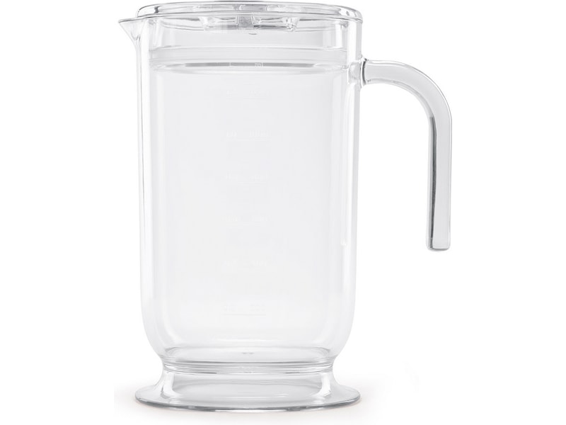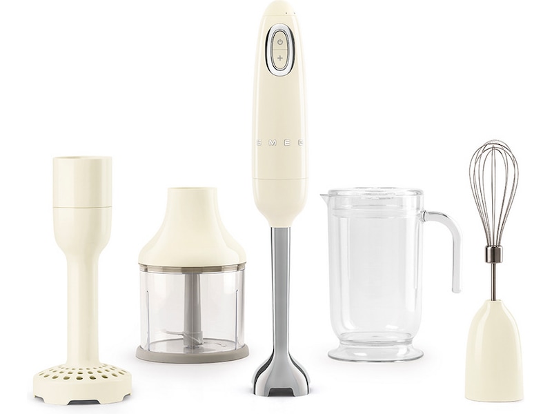 BPA-fri bägare, hackare med blad i rostfritt stål, potatisstöt och slutligen en visp i rostfritt stål.