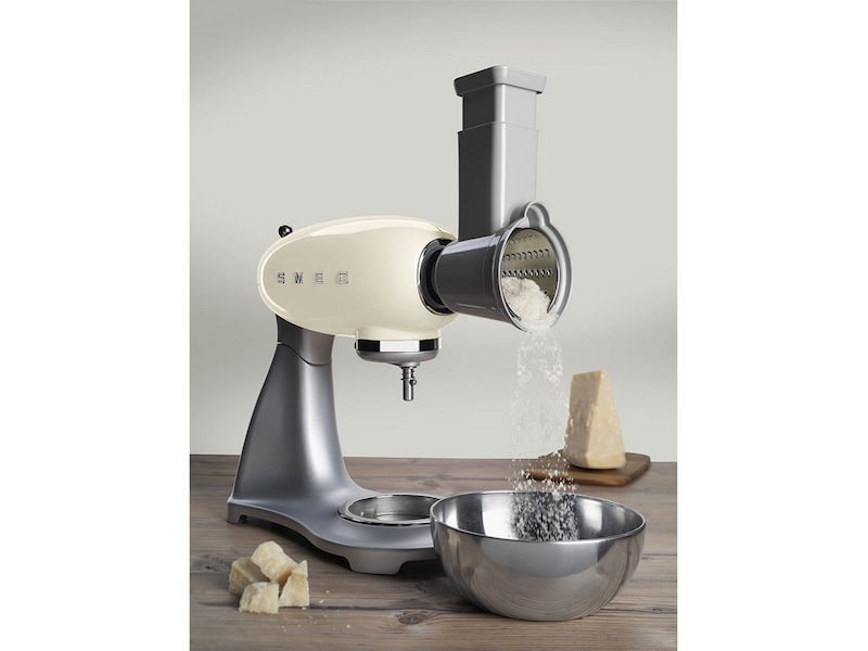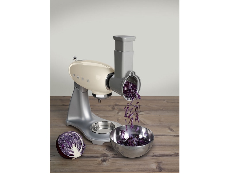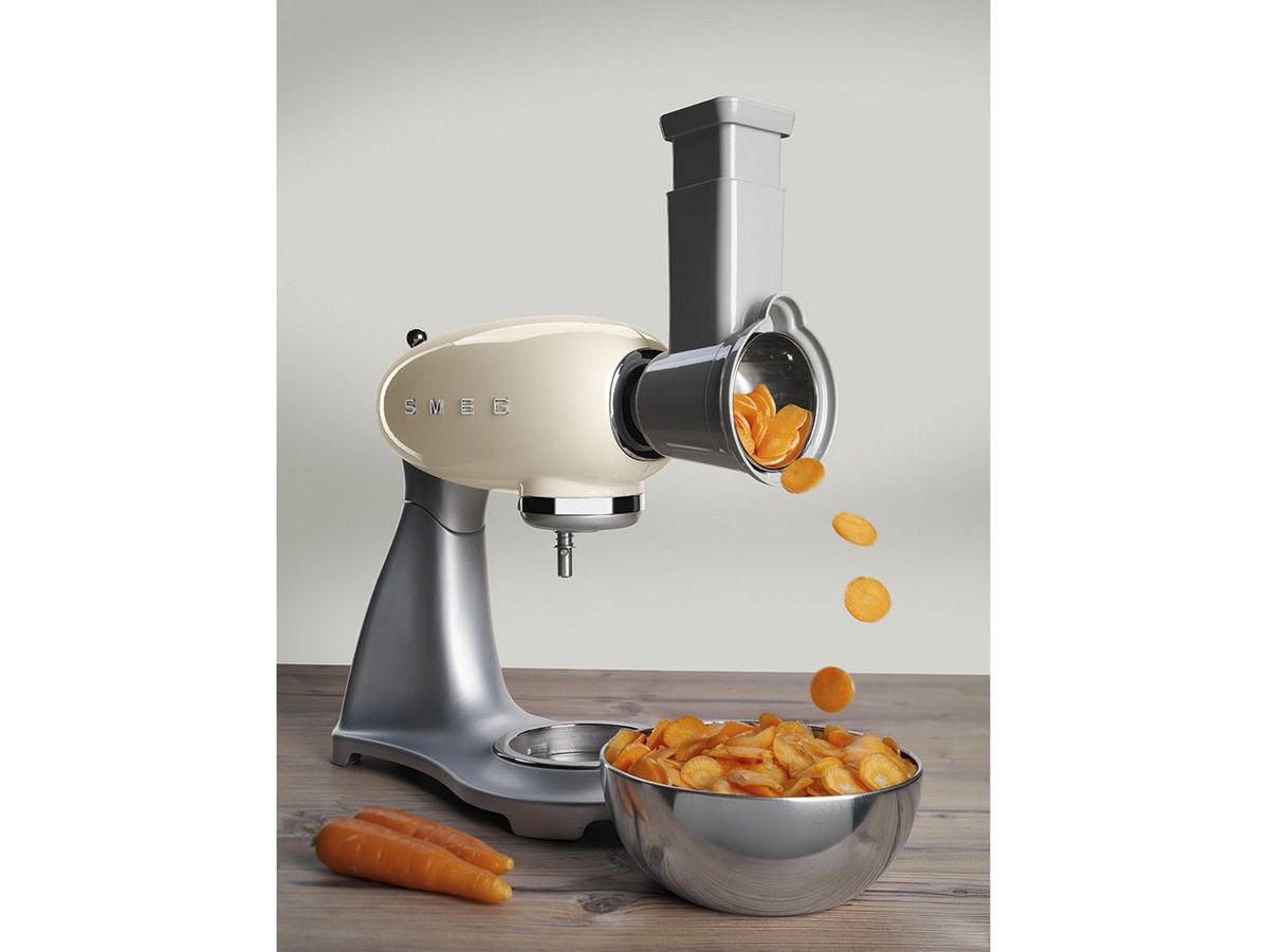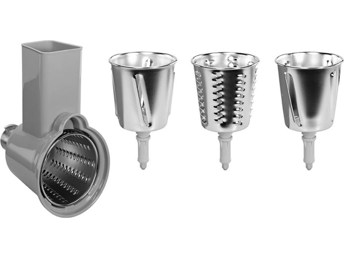 4 trummor för kapning, hyvling och rivning ingår som tillbehör: 1. medium plan 2. fin plan 3. grovt rivjärn 4. medium rivjärn. Kan inte användas i diskmaskin.