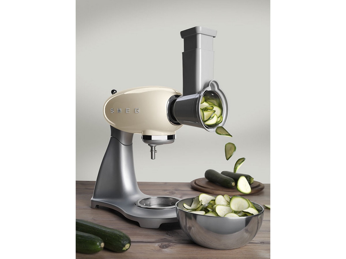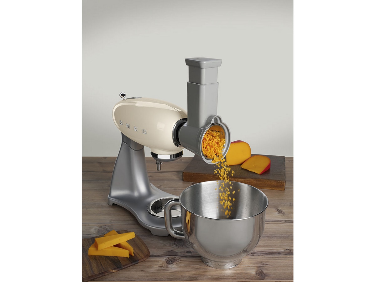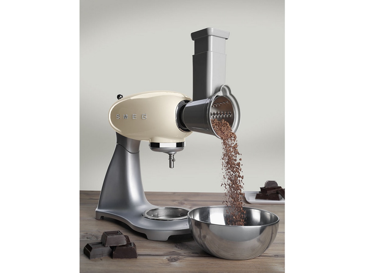 4 trummor för kapning, hyvling och rivning ingår som tillbehör: 1. medium plan 2. fin plan 3. grovt rivjärn 4. medium rivjärn. Kan inte användas i diskmaskin.