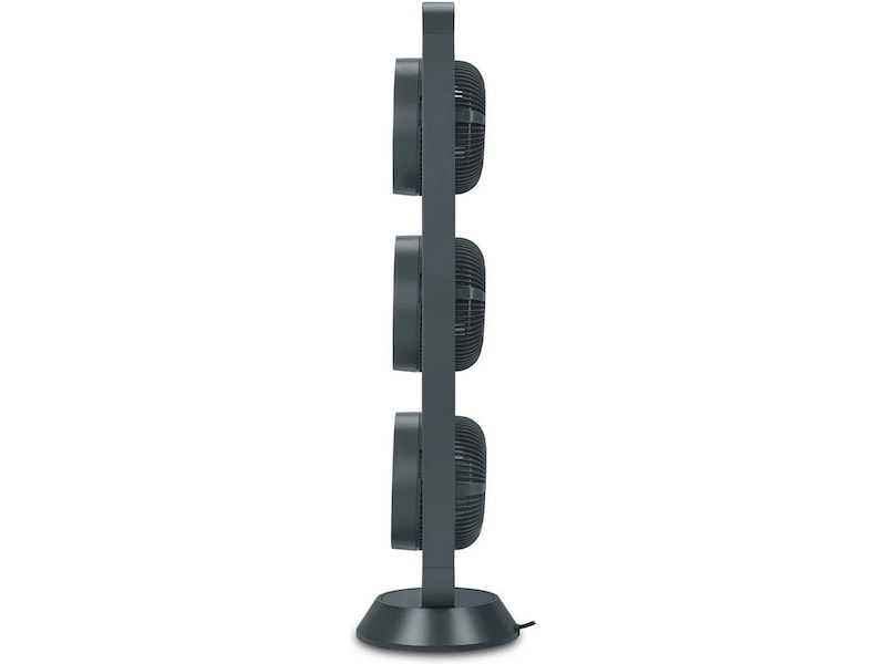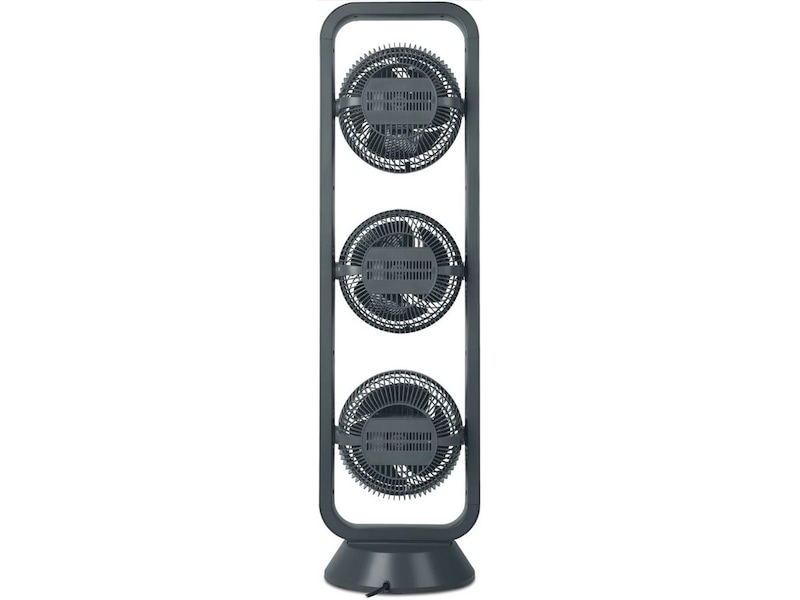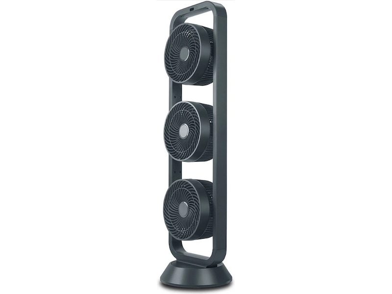 Oscillerande golvfläkt från Loeffen: tre individuellt styrbara fläktar, tyst och kraftfull 105 W motor, stor luftcirkulation. Tre hastigheter, knappar eller fjärrkontroll. Lämplig för sovrum, kontor eller stugor för ett bättre inomhusklimat.