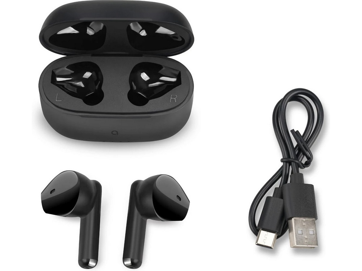 - Hörlurar, laddningsfodral, strömkabel och manual