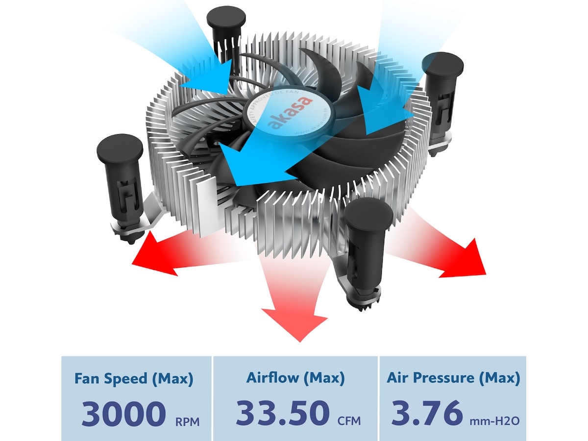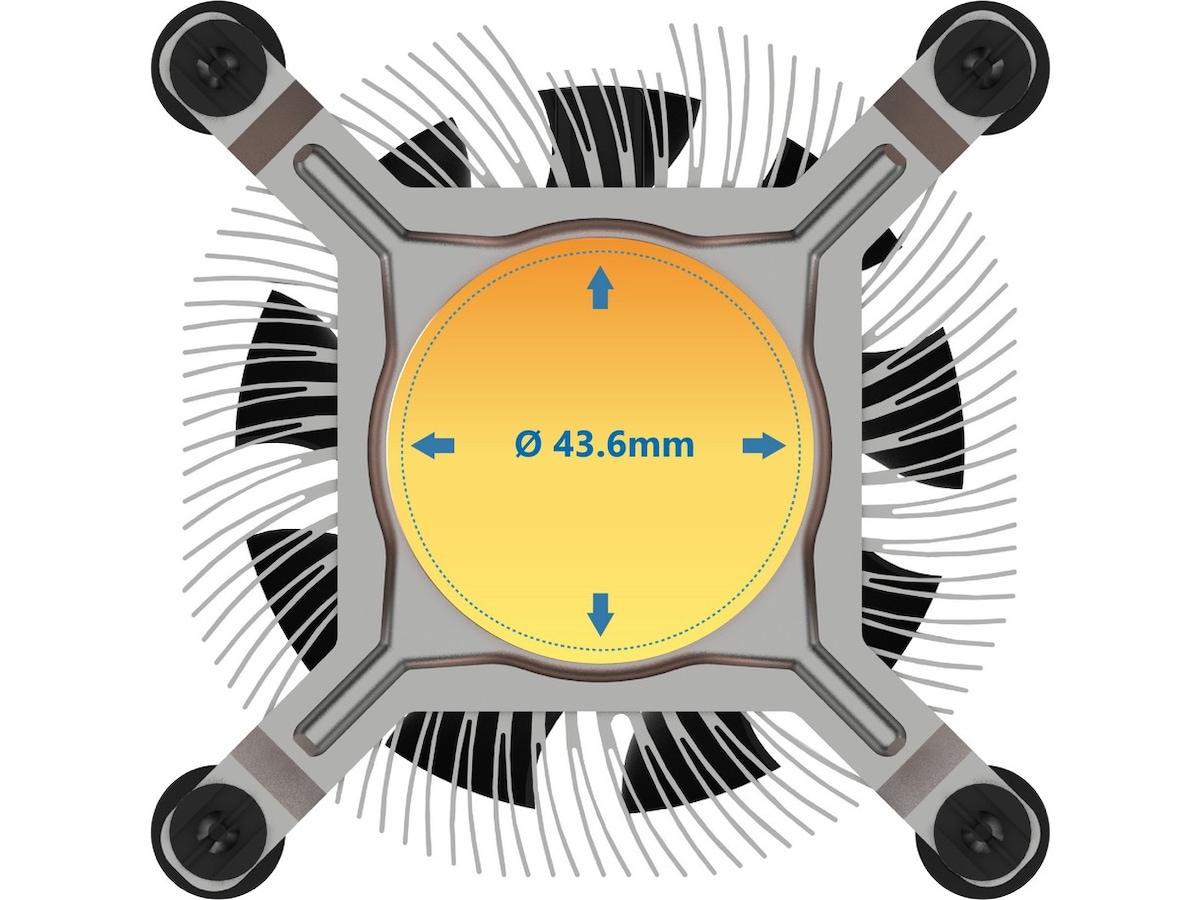 Den nya LGA1700-sockeln passar för processorer med större paketstorlekar jämfört med tidigare generationer av stationära processorer. För att säkerställa maximal kontakt och termisk överföring har Akasa utökat kontaktytan mellan kylarkärnan och processorn för att maximera värmeavledning och kylprestanda.