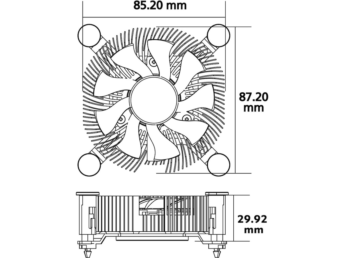 29,92 mm kylfläns med inbyggd fläkt ger en kompakt kyllösning med låg ljudnivå för Intel® LGA1700-processorer upp till 73W TDP i mini-ITX- och Micro-ATX-chassi.