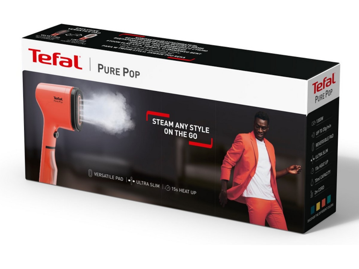 Med Tefal Pure POP Garment Steamer i livfulla färger kan du enkelt ånga dina kläder utan att behöva hitta strykbrädan. Det gör det enkelt att släta ut veck på dina kläder var du än är. Den snygga och smarta designen gör att Pure POP enkelt kan packas undan, så att du har den till hands när du behöver den. Den kommer även med en åkpåse, så den är lätt att ta med sig.