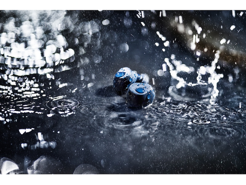 Beprövad under extrema förhållanden – ingenting är för tufft för Elite 8 Active: världens tåligaste hörlurar*. Genom militärklassad prövning** har hörlurarna gått igenom cyklar av stöt-, damm- och vattenbehandling samt termisk behandling. De här hörlurarna är helt vattentäta även när de är dränkta i upp till 1,5 m, de tål rejäla dammoln och fall från 1 meter. Även skalet är dammtåligt och stänktåligt, så att du inte behöver lämna det bakom.